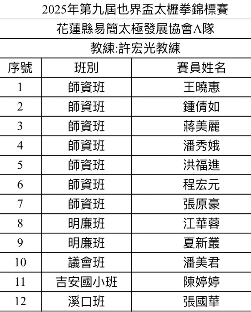 🏅花蓮縣易簡太極發展協會A隊(豐裡班)第四名