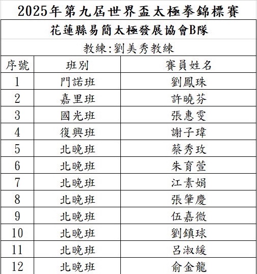 🏅花蓮縣易簡太極發展協會B隊(復興班)第三名